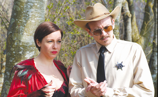 omskabte hurtigt de to skuespillere til et par fra det »Vilde Vesten«. Han - udstyret med en drabelig seksløber og solbriller. Hun - med en synlig barm, som var en bordelværtinde værdig.