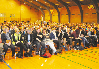 Dialog: Over 500 kommunale forældre og dagplejere mødtes torsdag aften i Oksbølhallen til en snak om samarbejde og inklusion.