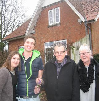 Michelle (22) og Mathias (23) blev gift sidste år i maj og flytter til den nye adresse fra Brande. Hun stammer fra Næstveds opland og flyttede som 12-årig med sine forældre til Blåhøj ved Brande. Mathias (23) stammer fra Ølgod, hvor han også frem til mødet med Michelle havde sin ungdom – blandt andet som medlem af det nu opløste band, ”Reunite.” Begge har gennemgået maskinsnedker-uddannelse hos HTH, hvor han fremdeles er beskæftiget, mens Michelle lige holder en pause – selv om hun for nogle år siden blev kåret som nummer tre ved DM for maskinsnedkerlærlinge.