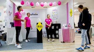 Der var rigtig tæt løb mellem butikkerne på sidstedagen, men efter dommervoteringen vandt eleverne i de lyserøde t-shirt fra Inspiration med "Støt Brysterne"-kampagnen i centrum.