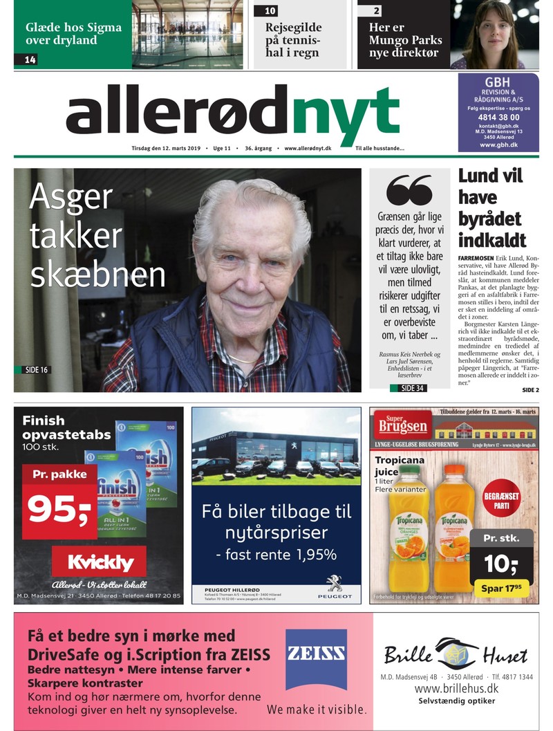2 10 Glæde hos Sigma over dryland Her er Mungo Parks nye direktør Rejsegilde på tennishal i regn 14 Følg ekspertise - spørg os 4814 38 00 kontakt@gbh.dk M.D. Madsensvej 13 3450 Allerød Tirsdag den 12. marts 2019 Uge 11 Q Q 36. årgang Q www.allerødnyt.dk www.gbh.dk Til alle husstande