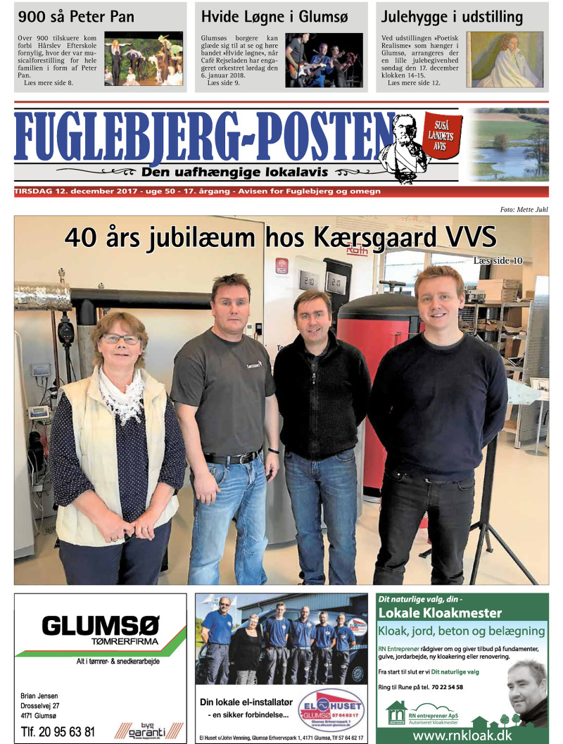 10 Susåavisen TIRSDAG D. 12. DECEMBER 2017 40 års jubilæum hos Kærsgaard VVS Hvad der startede som en lille enmandsvirksomhed på hjemmeadressen har vokset sig til en stor, moderne servicevirksomhed med 20 ansatte. FUGLEBJERG: Et firmajubilæum i denne størrelsesorden er lidt af en milepæl. Og nat