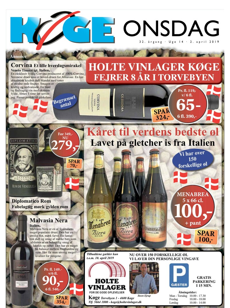 HOLTE VINLAGER KØGE FEJRER 8 ÅR I TORVEBYEN Moulin-à-Vent Zinfandel 2014 Cru Beaujolais 2013 Silvia Cellars Denne vin er et kup til prisen - perfekt modnet og helt på toppen nu! Delikat krydret, saftig bærfrugt og utrolig blød og afrundet. En vin der vil stortrives sammen med lettere kødretter,