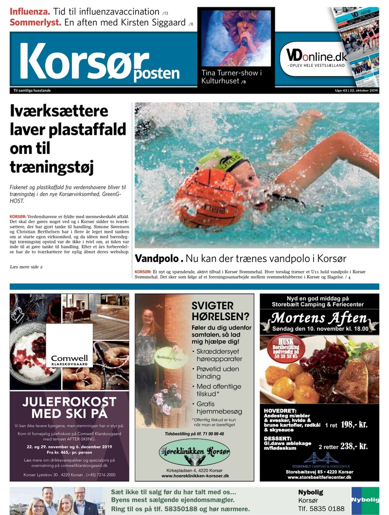 Influenza. Tid til influenzavaccination /13 Sommerlyst. En aften med Kirsten Siggaard /8 Tina Turner-show i Kulturhuset /8 OPLEV HELE VESTSJÆLLAND Til samtlige husstande Uge 43 22. oktober 2019 Iværksættere laver plastaffald om til træningstøj Fiskenet og plastikaffald fra verdenshavene blive