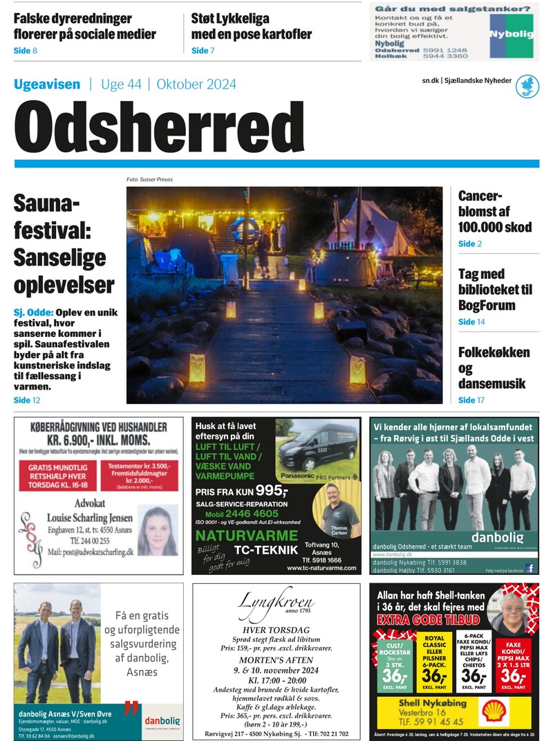 Falske dyreredninger florerer på sociale medier Støt Lykkeliga med en pose kartofler Side 8 Side 7 Ugeavisen Uge 44 Oktober 2024 Foto: Susser Preuss Saunafestival: Sanselige oplevelser Sj. Odde: Oplev en unik festival, hvor sanserne kommer i spil. Saunafestivalen byder på alt fra kunstnerisk
