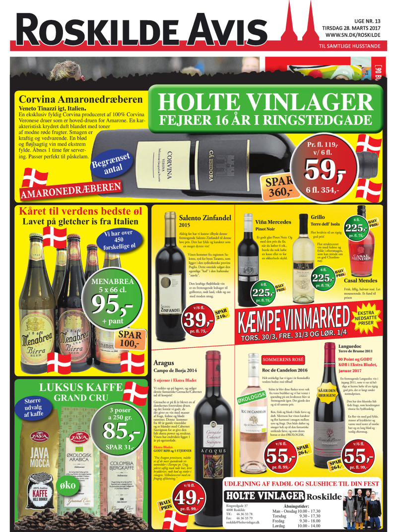 6 Tirsdag 28. marts 2017 OPEN BY NIGHT Fredag d. 31/3 åbent til kl. 21.00 7 ÅRS FØDSELSDAG S PA R 20 på ALLE varer i butikken * Fratrækkes varens normalpris ved kassen. Gælder t.o.m. den 2/4-17. ROSKILDE SKOMAGERGADE 22 46 32 00 60 wagner.dk