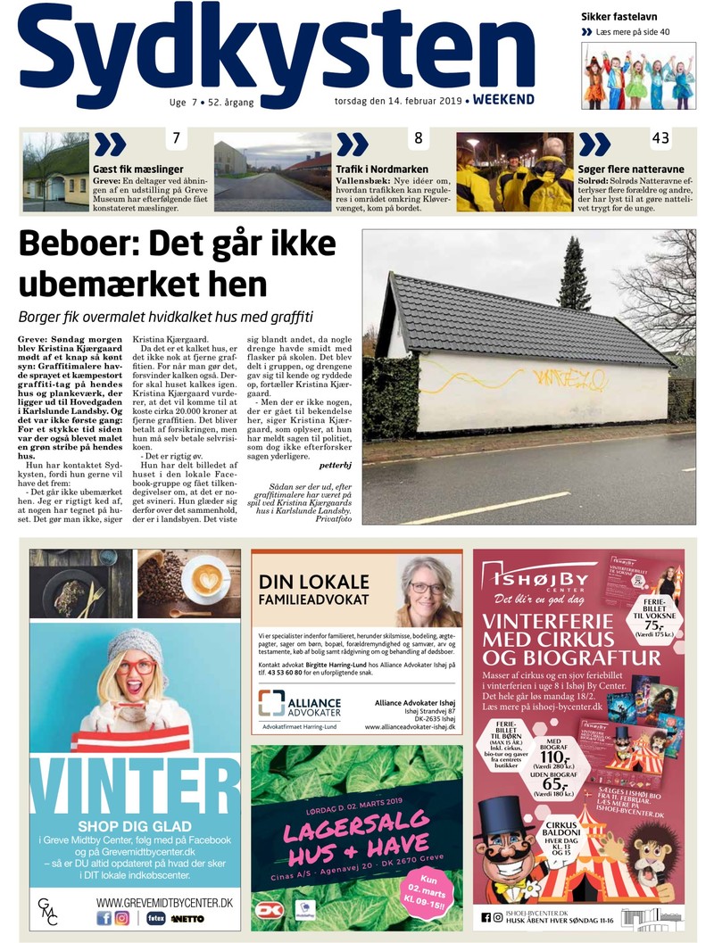 2 Sydkysten WEEKEND - en del af Fyldt med lokale impulser Greve Strandvej 24, 2670 Greve Tlf. 4390 4422 Man.-fre.: 9.00-16.00 UDGIVELSESDAG TORSDAG / FREDAG TRYK & SATS Dagbladet Ringsted A/S DISTRIBUTION FK Distribution Ved udeblivelse af Sydkysten kontakt os venligst på telefon 7010 4000