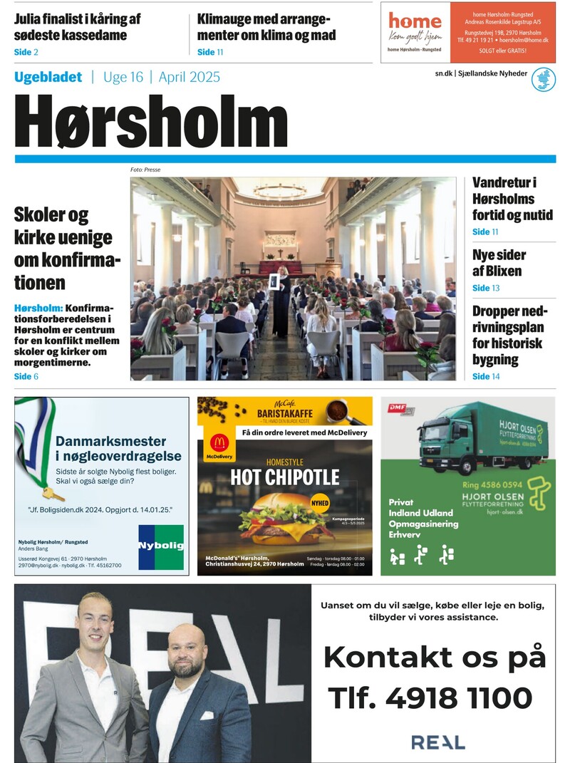 Julia finalist i kåring af sødeste kassedame Klimauge med arrangementer om klima og mad Side 2 Side 11 Ugebladet Uge 16 April 2025 Foto: Presse Skoler og kirke uenige om konfirmationen Vandretur i Hørsholms fortid og nutid Side 11 Nye sider af Blixen Side 13 Hørsholm: Konfirmationsforbere