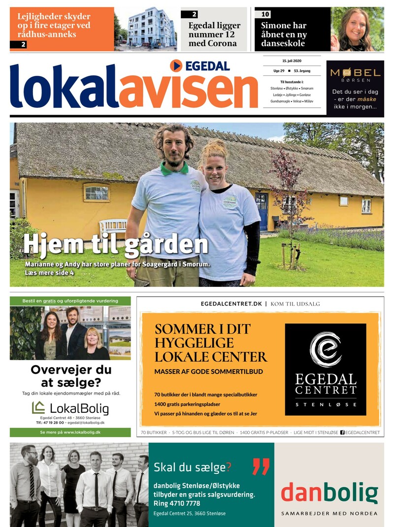 Lejligheder skyder op i fire etager ved rådhus-anneks 2 2 10 Egedal ligger nummer 12 med Corona Simone har åbnet en ny danseskole 15. juli 2020 Uge 29 n 53. årgang Til husstande i: Stenløse l Ølstykke l Smørum Ledøje l Jyllinge l Ganløse Gundsømagle l Veksø l Måløv Hjem til gården Marianne og